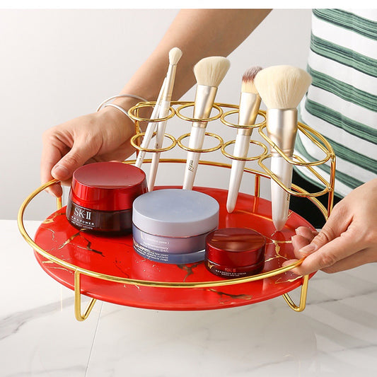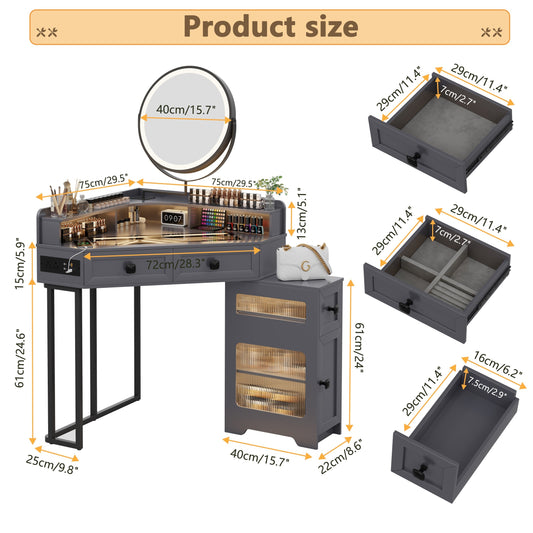Dystler Corner Vanity with Mirror, Lights, and Power Outlet - Modern Makeup Vanity Set