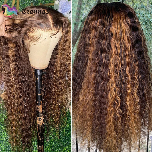Highlight Short Curly Bob Wig 13x4x1 Lace Front Human Hair Wigs Pre Plucked P4/27 Colored