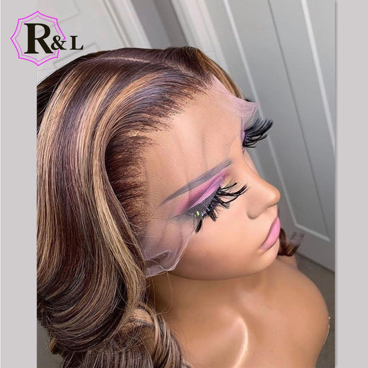 RULINDA Lace Front Human Hair Wigs With Baby Hair Highlight Ombre Color