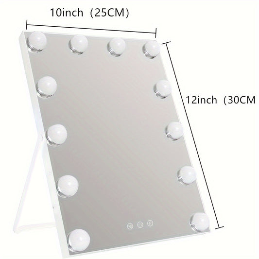Vanity Mirror with Lights, 12"Hollywood Lighted Makeup Mirror with 3 Color Modes Touch Control for Bedroom, White
