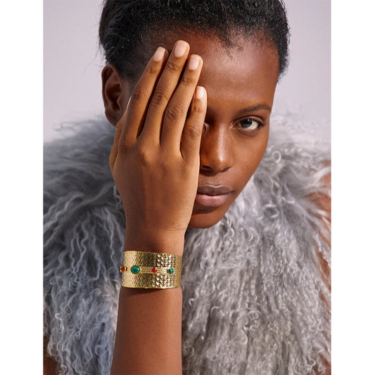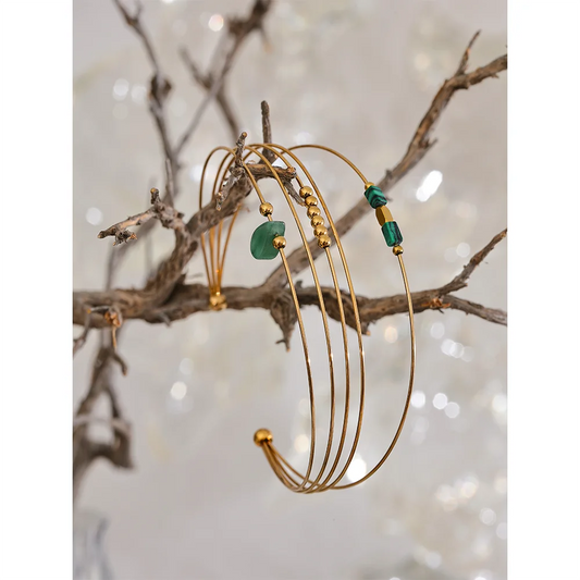 Yhpup 2023 Stainless Steel Green Agent Stone Multi-Layer Thin Circle Cuff Bracelet