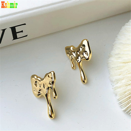 Kshmir 2020 New Punk Gold Metal Drop Wax Irregular Lava Metal Buckle Earrings