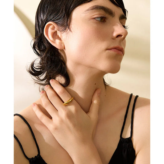 Yhpup Minimalist Gold Color Stainless Steel Cast Waterproof Fashion Ring