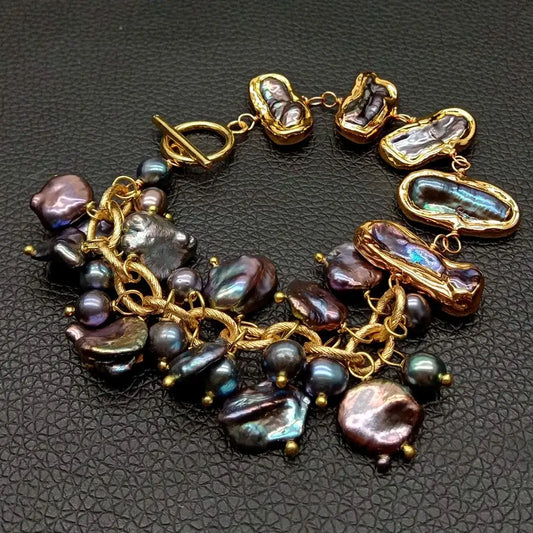 Y·YING Punk Natural Cultured Black Biwa Freshwater Pearl Bracelet 8"