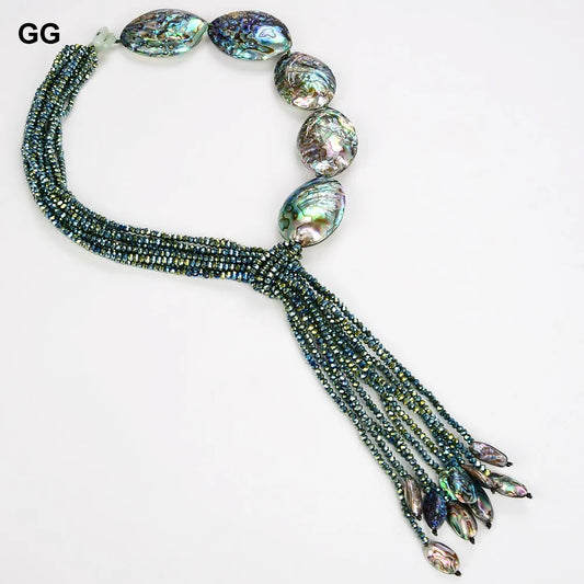 GG Natural 22" Paua Abalone Shell Green Crystal Pendant Necklace