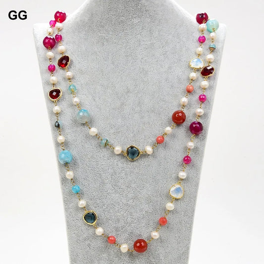 GuaiGuai Jewelry 56"l Multi Color Agate Crystal Long Necklace