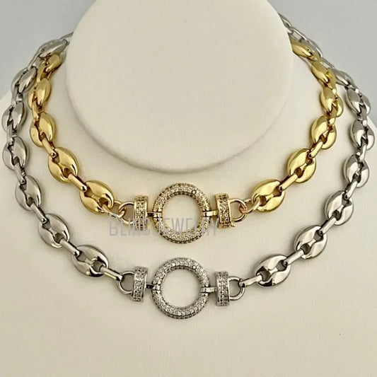 Round Clasp Puffed Coffee Bean Mesh Chain Choker
