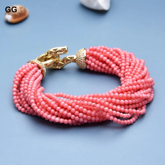 GuaiGuai Jewelry 8.5" 20 Strands Pink Coral Round Beads Bracelet