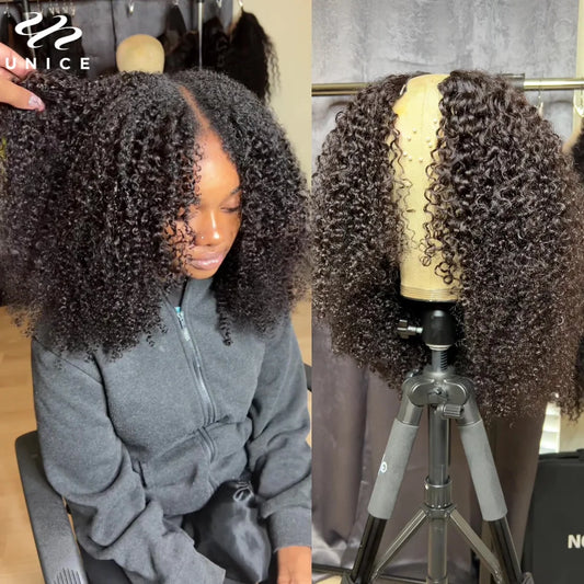UNice Hair Kinky Curly V Part Wig- Human Hair