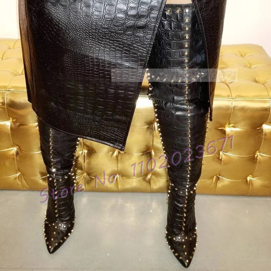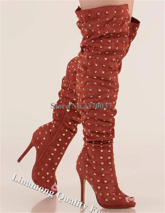 Sparkling Studded Thigh High Boots