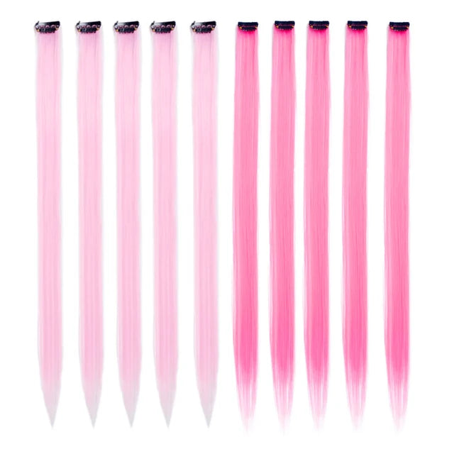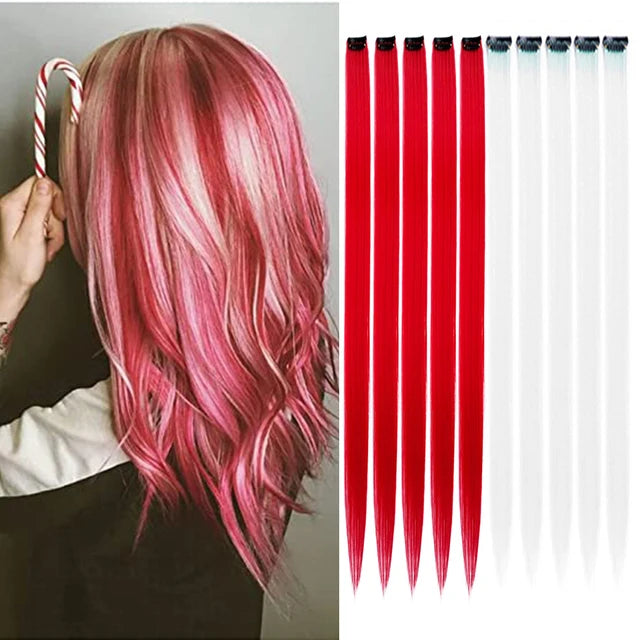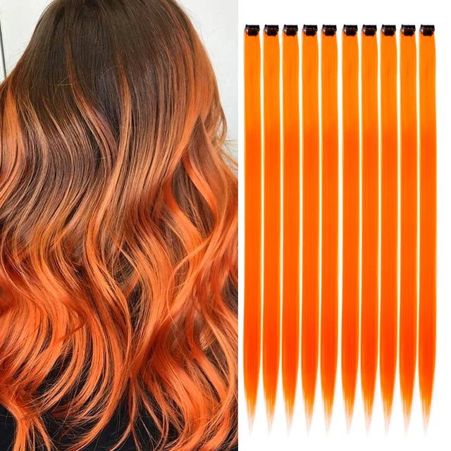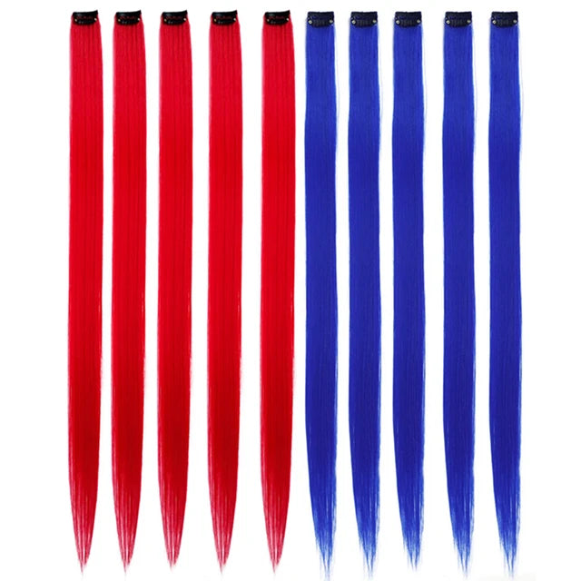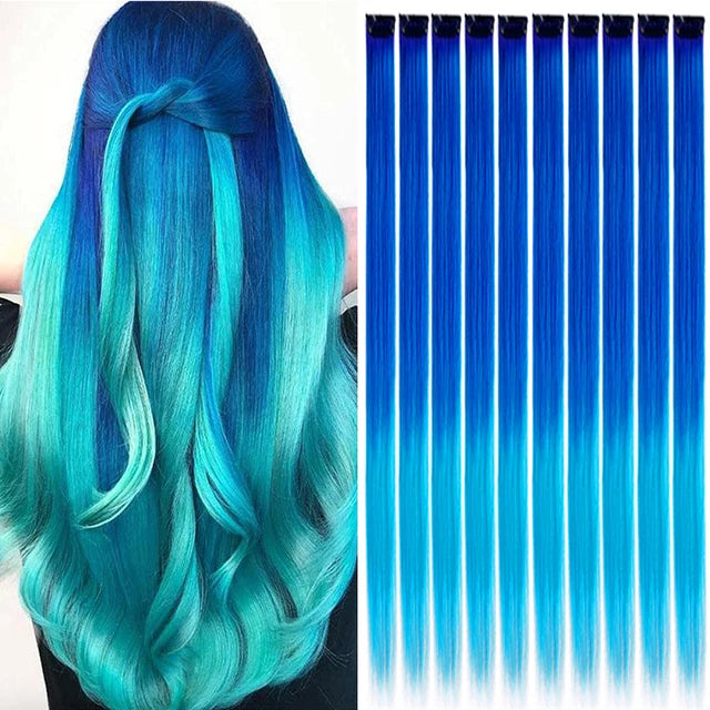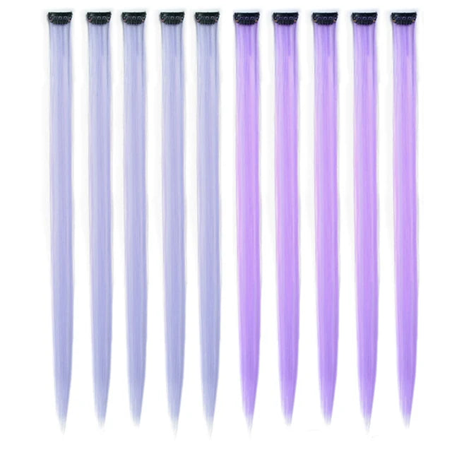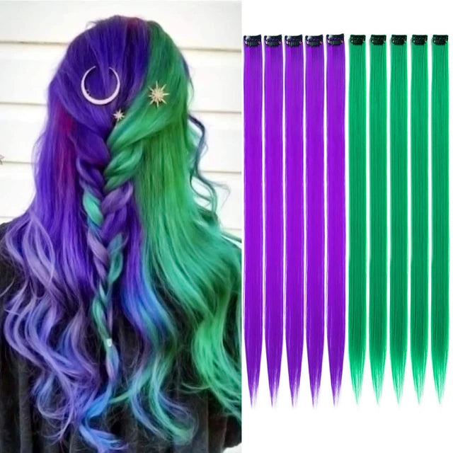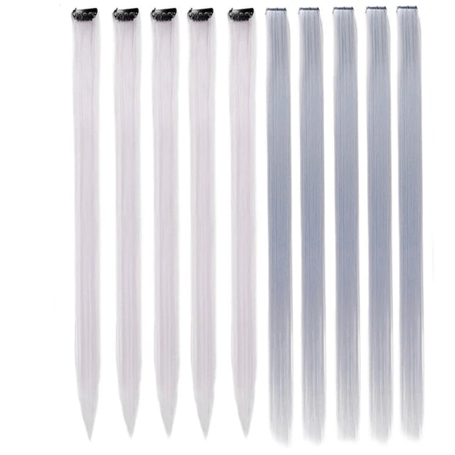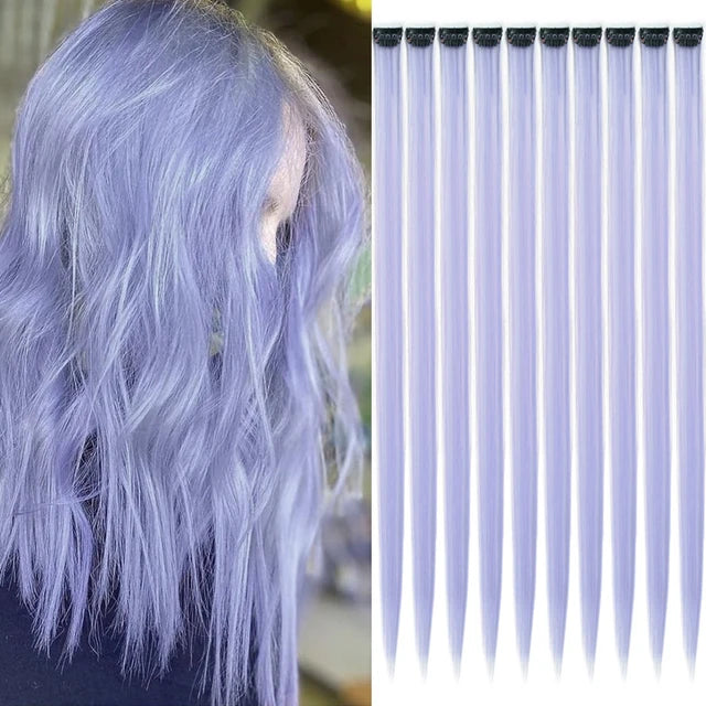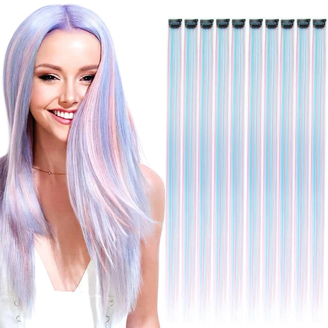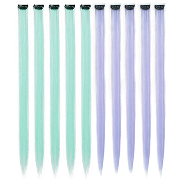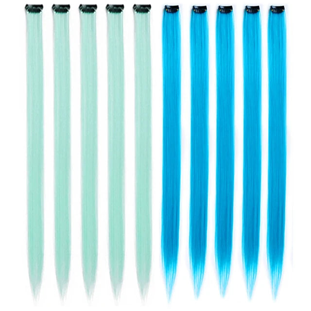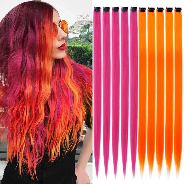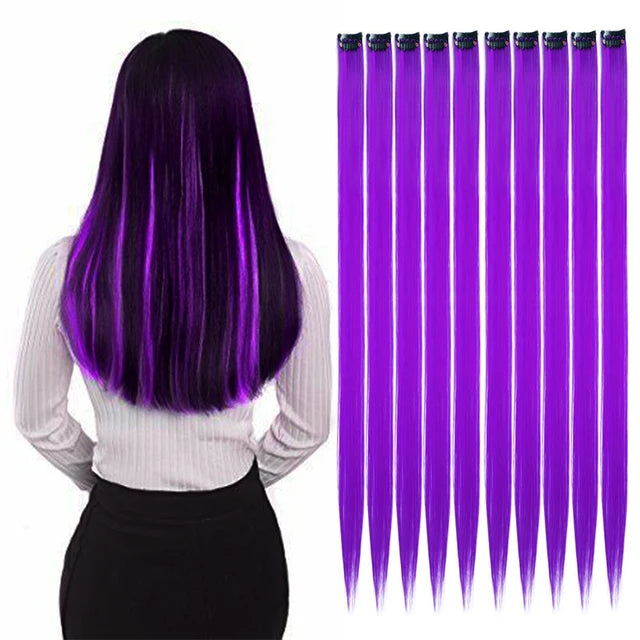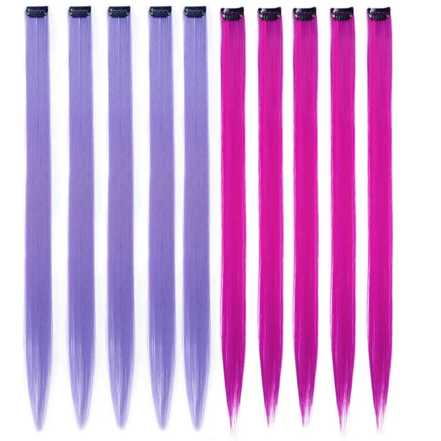 10Packs Straight Colored Clip-In Hair One Piece Long Synthetic Rainbow 22 Inchhair ex