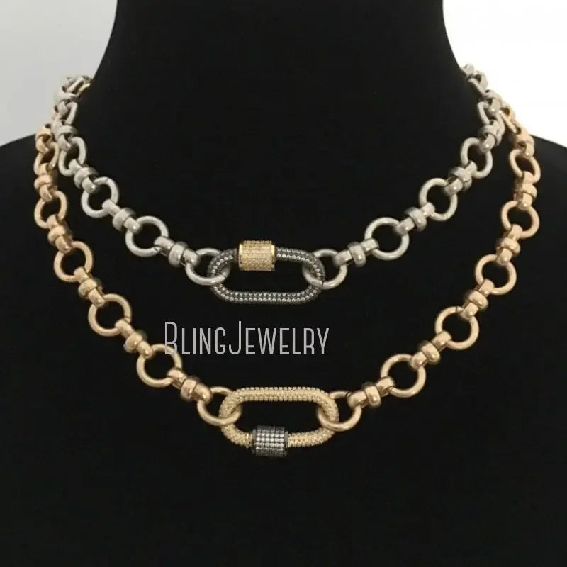 Indulge in the ultimate addition to your jewelry collection - the Chunk Cable Chain Layer Necklace CZ Carabiner Screw Lock Clasp Switch Choker. Crafted with passion and precision, this stainless steel necklace exudes a stylish and bold aura. From the geometric shape to the unique link chain style, every detail is carefully crafted to make you stand out from the crowd. Whether you're going to a party or just need a fashion upgrade, this necklace is perfect for all occasions. Get ready to ignite your senses and showcase your personality with this stunning piece from MUDULLA.