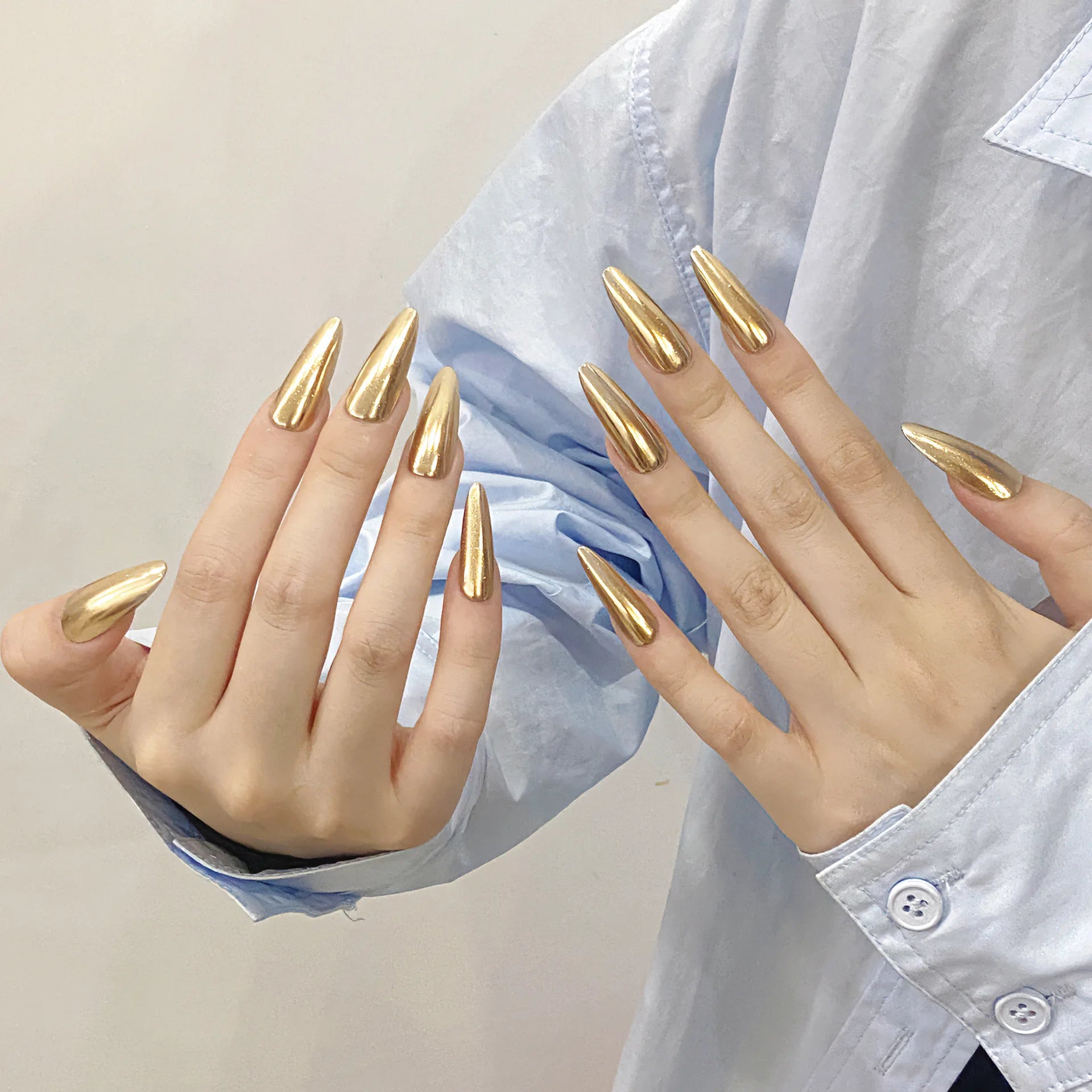 Transform your manicure game with these 10Pcs Handmade Almond Press on Nails! Each set features a gorgeous Champagne Gold Design that is both chic and glamorous. These durable, wearable and long-lasting false nails are perfect for adding a touch of elegance to any occasion. Made of high-quality plastic, these nails are easy to apply and will surely impress. Get your hands on these irresistible false nails today!