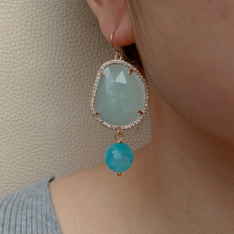 Rock the party with this 2 Rows Blue Faceted Agate Turquoise Set featuring Cultured White Biwa Pearls and Crystal accents. This vintage-inspired jewelry set includes a necklace, bracelet, and earrings for a complete and fashionable look. Perfect for the fashion-forward woman who loves to make a statement!