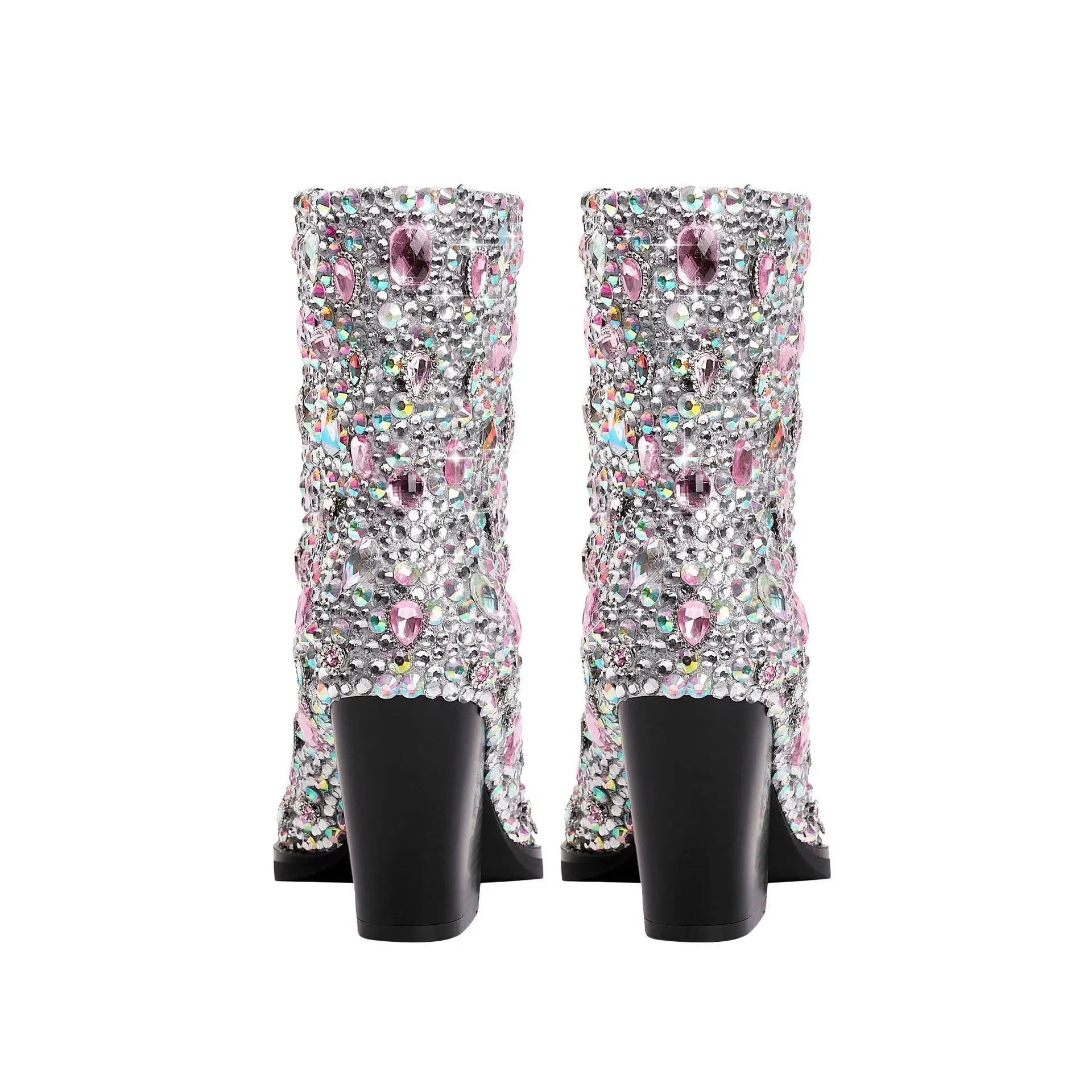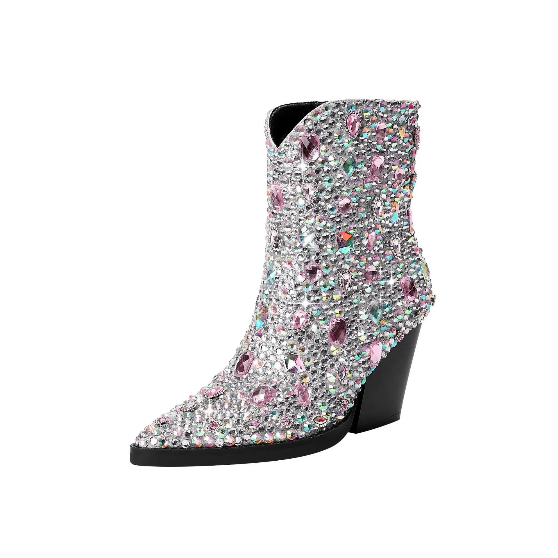 Pointed Rhinestone Ankle Boots Western Cowboy Boots