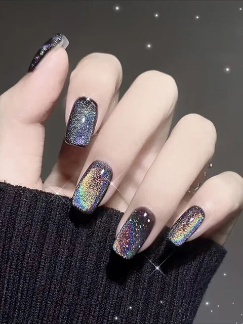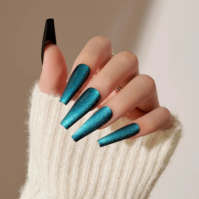 This box contains 24pcs of Cat Eye Phototherapy Nail Patch Wearable Fake Nails, perfect for any occasion. These long false nails are made of high-quality acrylic, providing a translucent and tender appearance that will leave you feeling glamorous and confident. The full cover design and adhesive application make them easy to wear and add a touch of elegance to your look. Treat yourself to this combo set and experience the beauty and convenience of these stylish false nails.