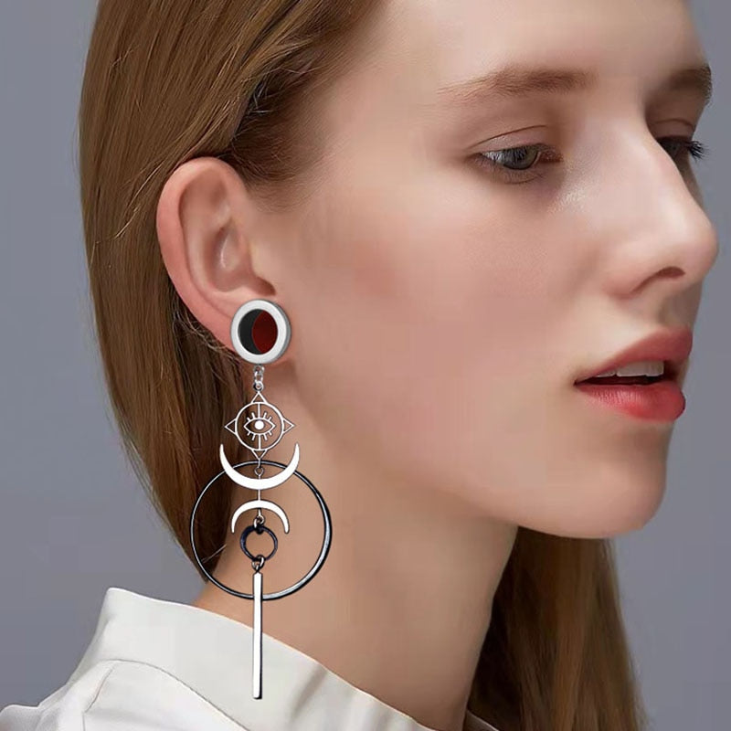 2PCS Crescent Moon Devil's Eye Circle Stainless Steel Ear Plugs