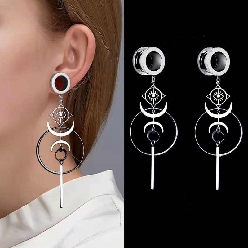 2PCS Crescent Moon Devil's Eye Circle Stainless Steel Ear Plugs Tunnel Ear Gauge Body Piercing Ear Expansions Ear Piercing