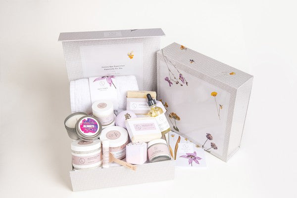 The A Special SPA gift box - Lavender offers an indulgent, all-natural bath experience. Our kit includes a delightful assortment of products that are handcrafted and carefully chosen for their high quality. Each item in this box, from the Lavender Soap Bar to the Scented Candle, is made with all-natural, chemical-free, and non-toxic ingredients. You can feel good about using our products, knowing they are free of harsh detergents, preservatives, and synthetic additives. Plus, they are never tested on animals. Give yourself or a loved one the gift of relaxation and self-care with this luxurious Lavender gift box. Made In: USAIngredients: A Women-only CA based company.