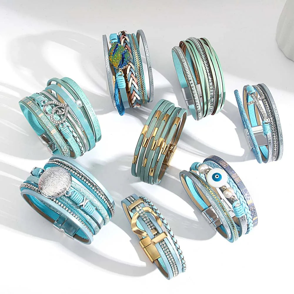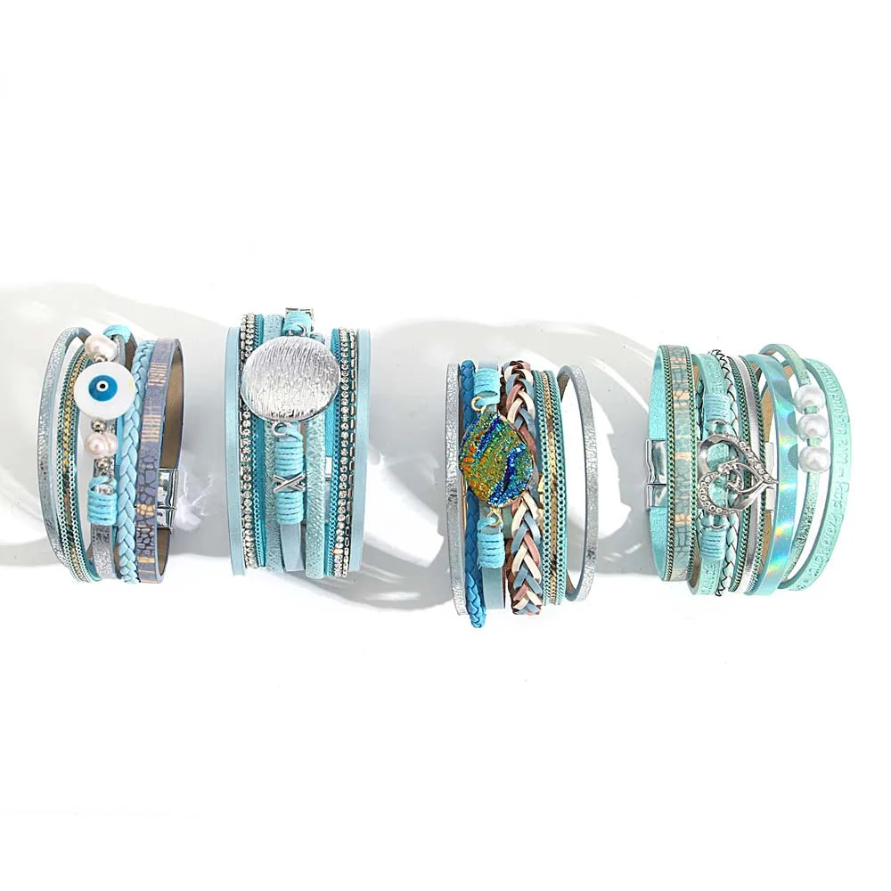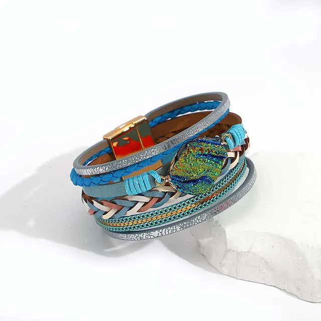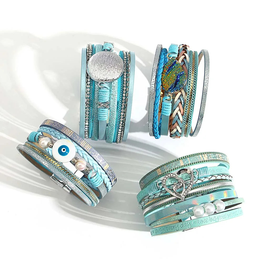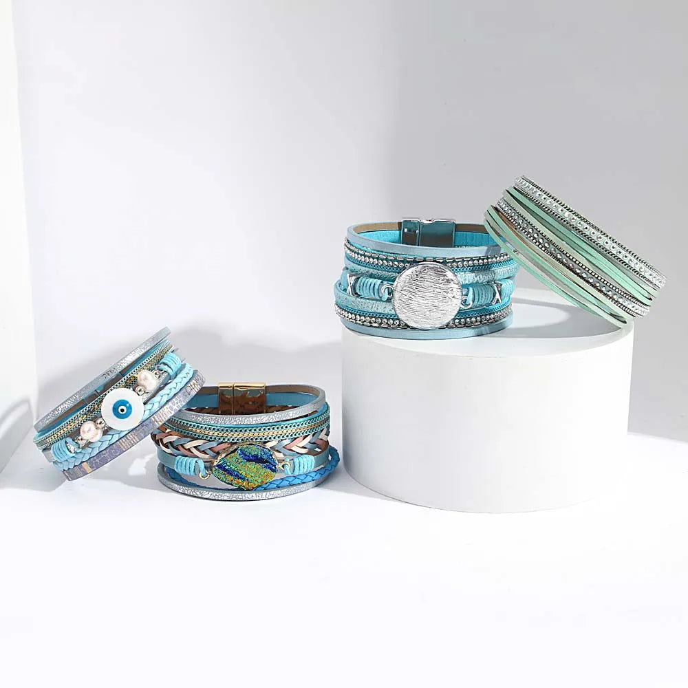 ALLYES Boho Blue Multilayer Braided Leather Bracelet