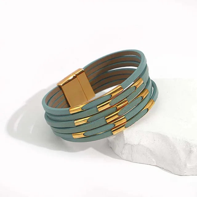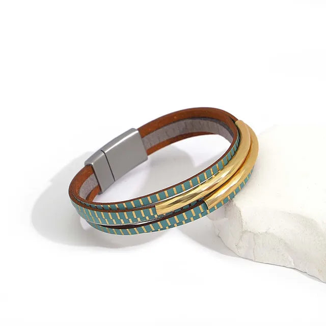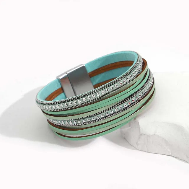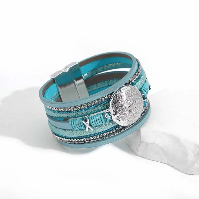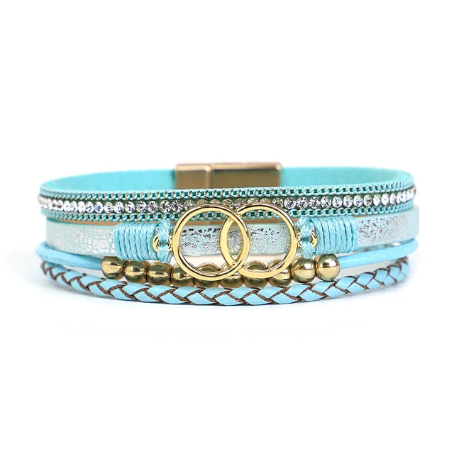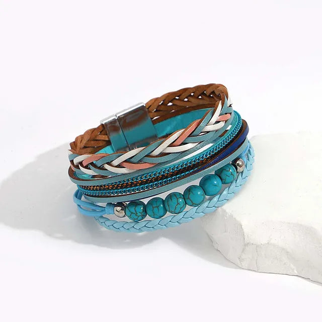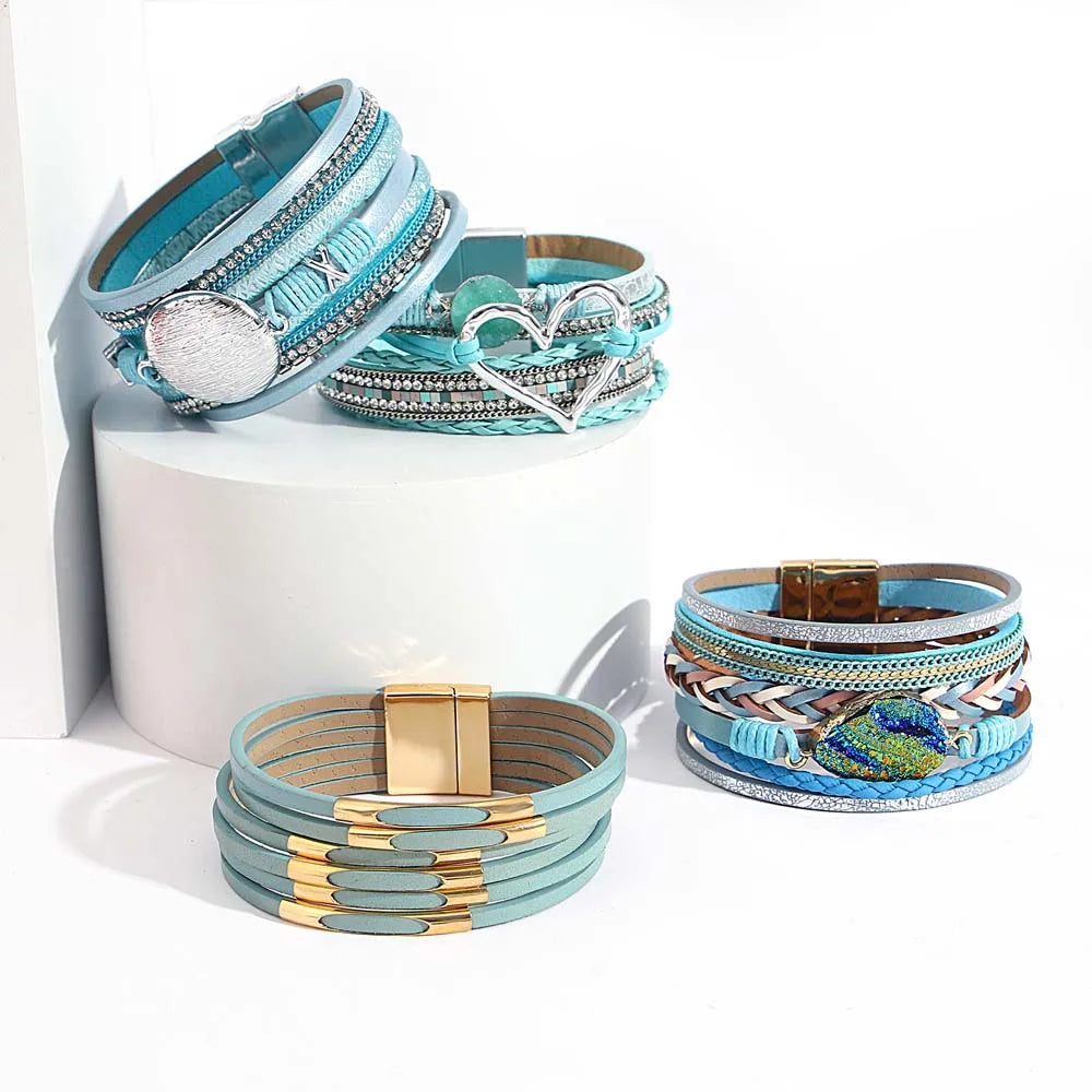 ALLYES Boho Blue Multilayer Braided Leather Bracelet