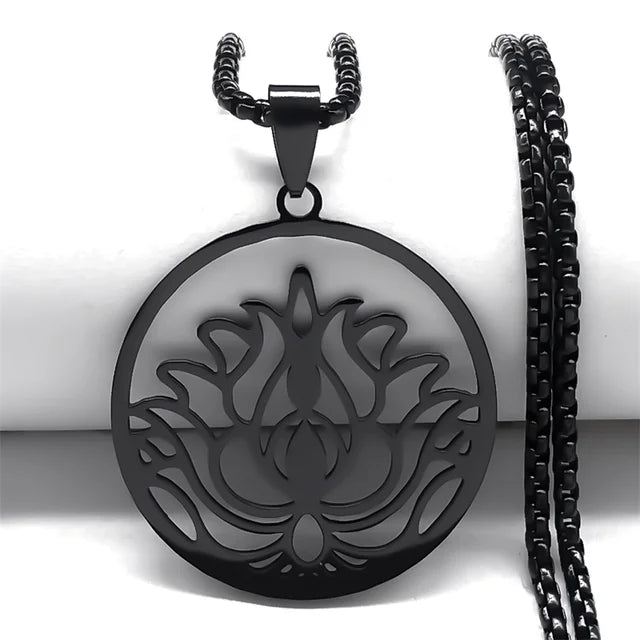 Gothic vibes meet inner peace with this trendy Lotus Flower Pendant Necklace. Made from durable stainless steel and featuring a sleek black design, this necklace is perfect for any occasion. Use it as a mood tracker or simply show off your unique style. Grab yours today and add some grunge to your jewelry collection!