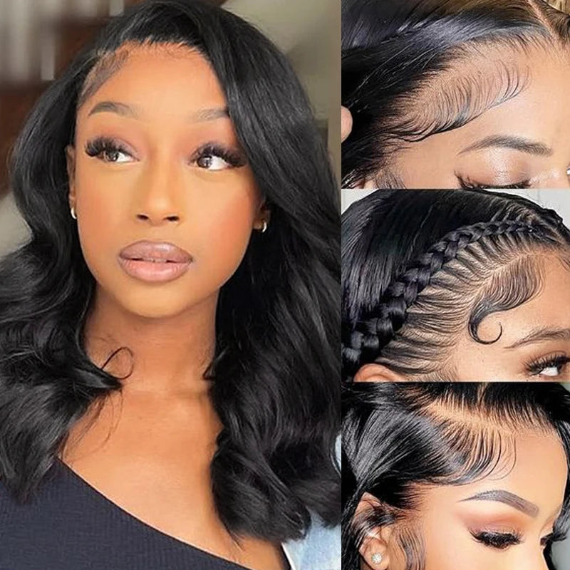 Body Wave Lace Front Bob Wigs 100% Remy Human Hair , Stretched Length - 16inches