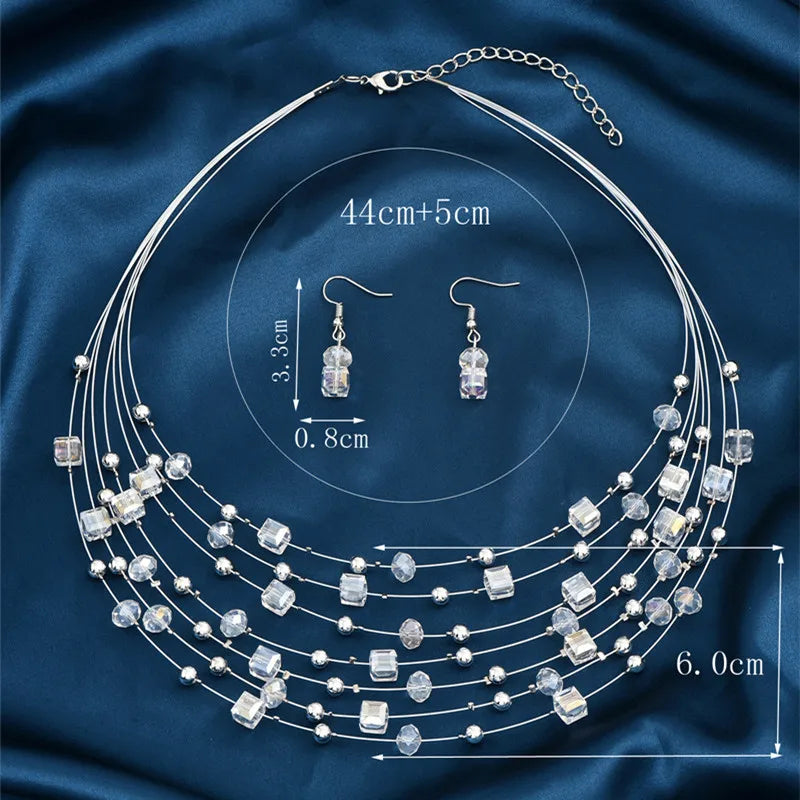 This stunning Bohemia Necklace Earrings Set is the perfect addition to any woman's jewelry collection. The set features a beautifully crafted Square Crystal Beads Jewelry Set with a multilayer choker necklace and matching earrings. The geometric design is sure to catch the eye and add a touch of bohemian style to any outfit. Crafted with high-quality CRYSTAL material and zinc alloy metals, this set exudes both fashion and elegance. Perfect for parties or any special occasion, this jewelry set will make you feel confident and stylish. Don't miss out on this must-have set!