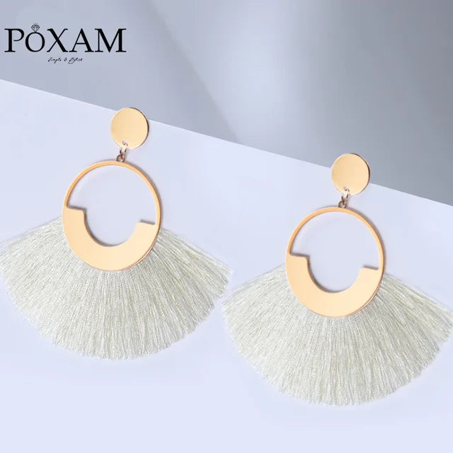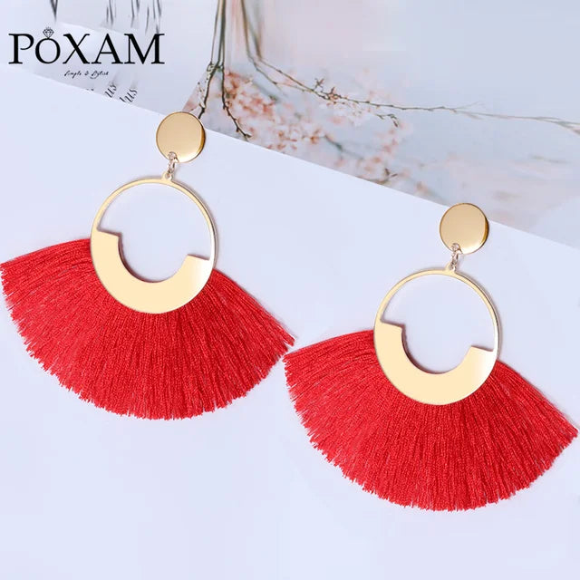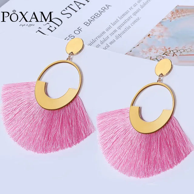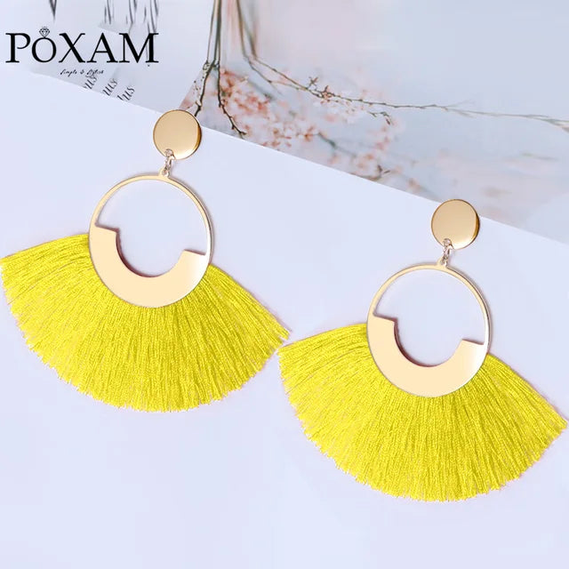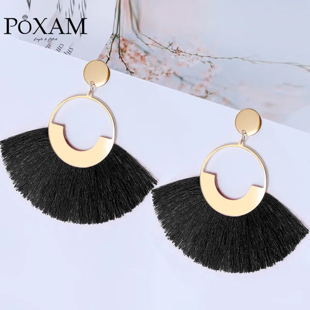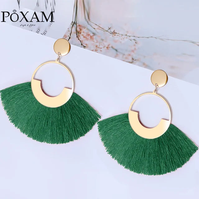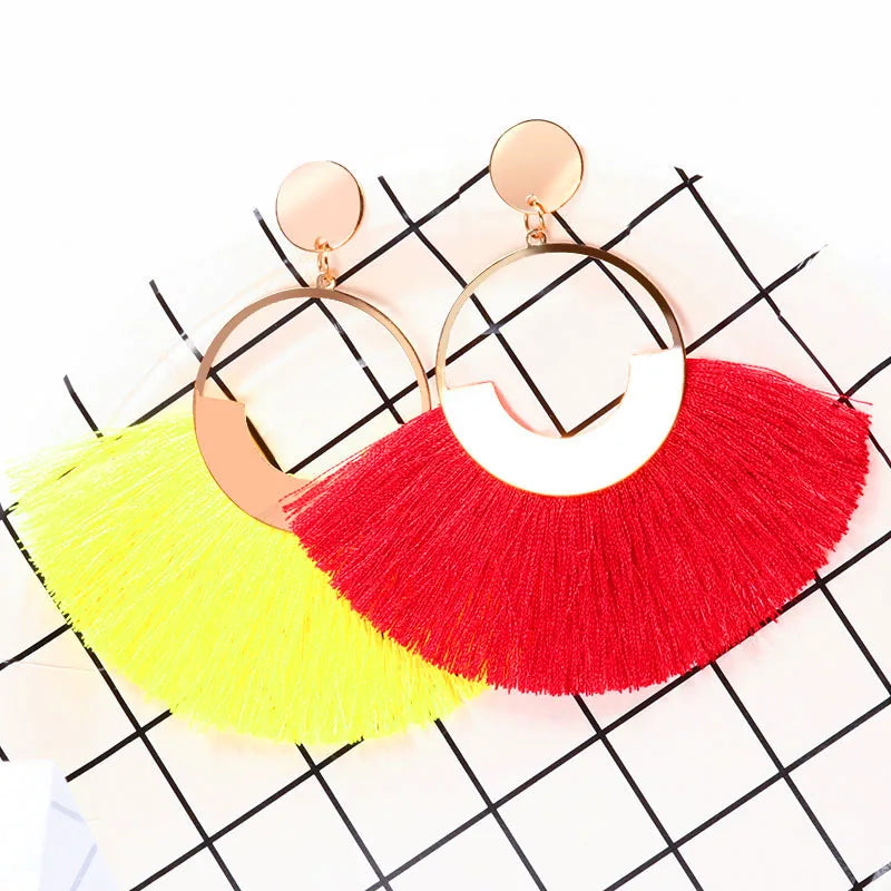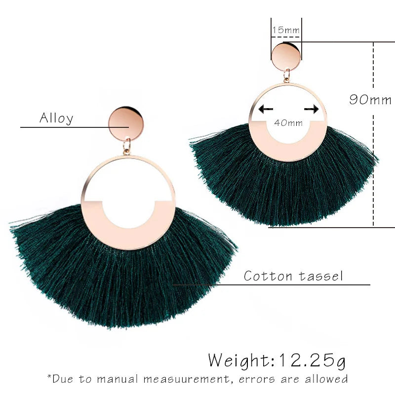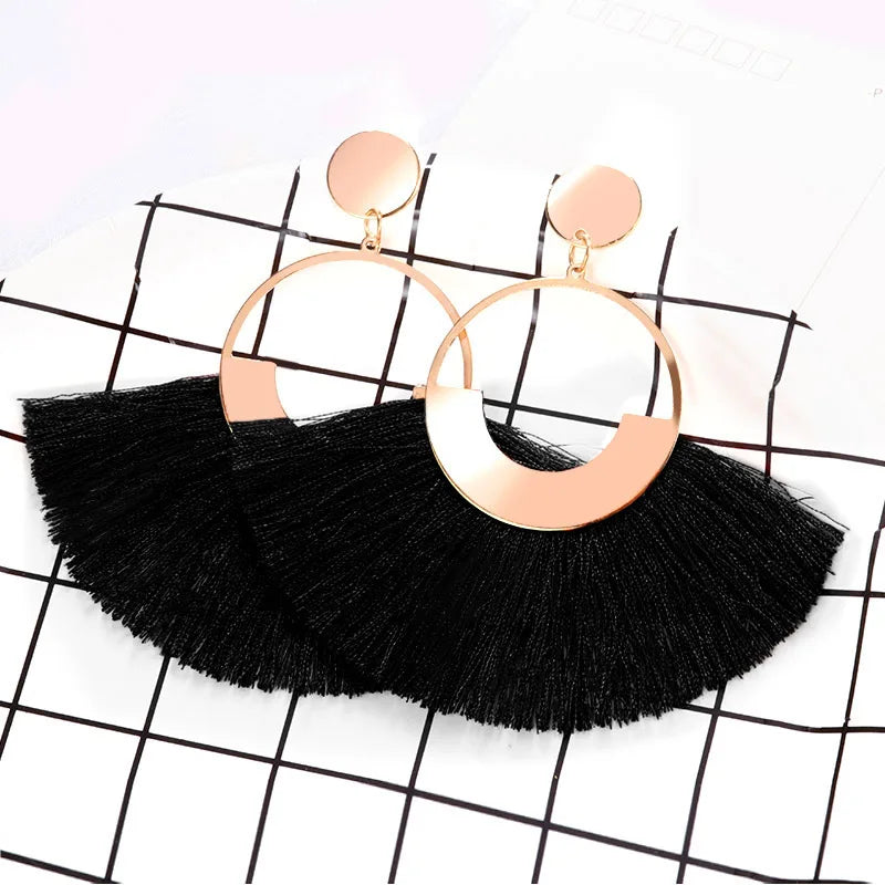 Add a touch of bohemian elegance to your wardrobe with our stunning Big Tassel Drop Dangle Earrings. Expertly handcrafted with delicate fringe details, these earrings are the perfect statement piece for any fashion-forward woman. Elevate your style and make a bold fashion statement with our Jewelry Collection. Treat yourself or gift them to someone special - these earrings are a must-have for any stylish lady!