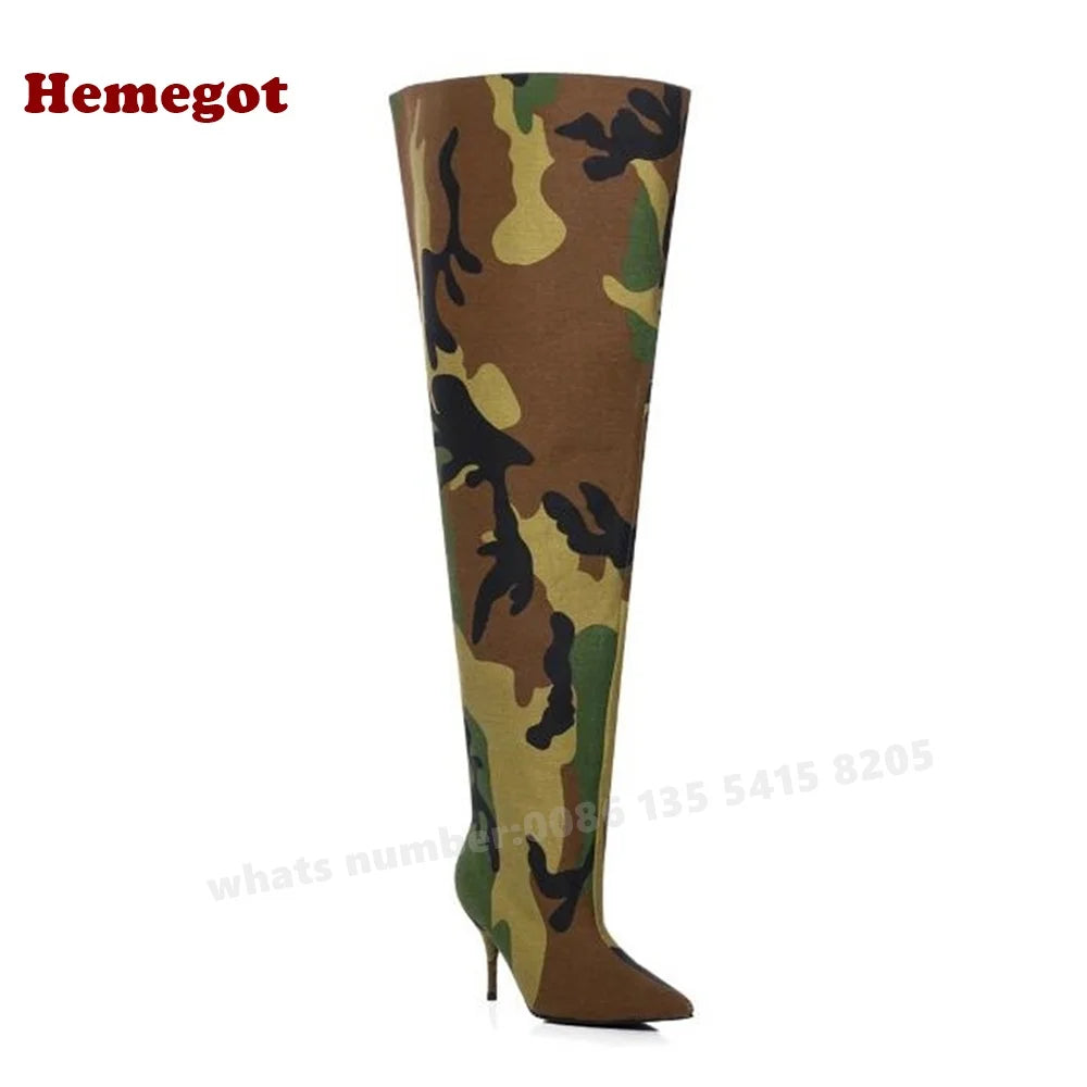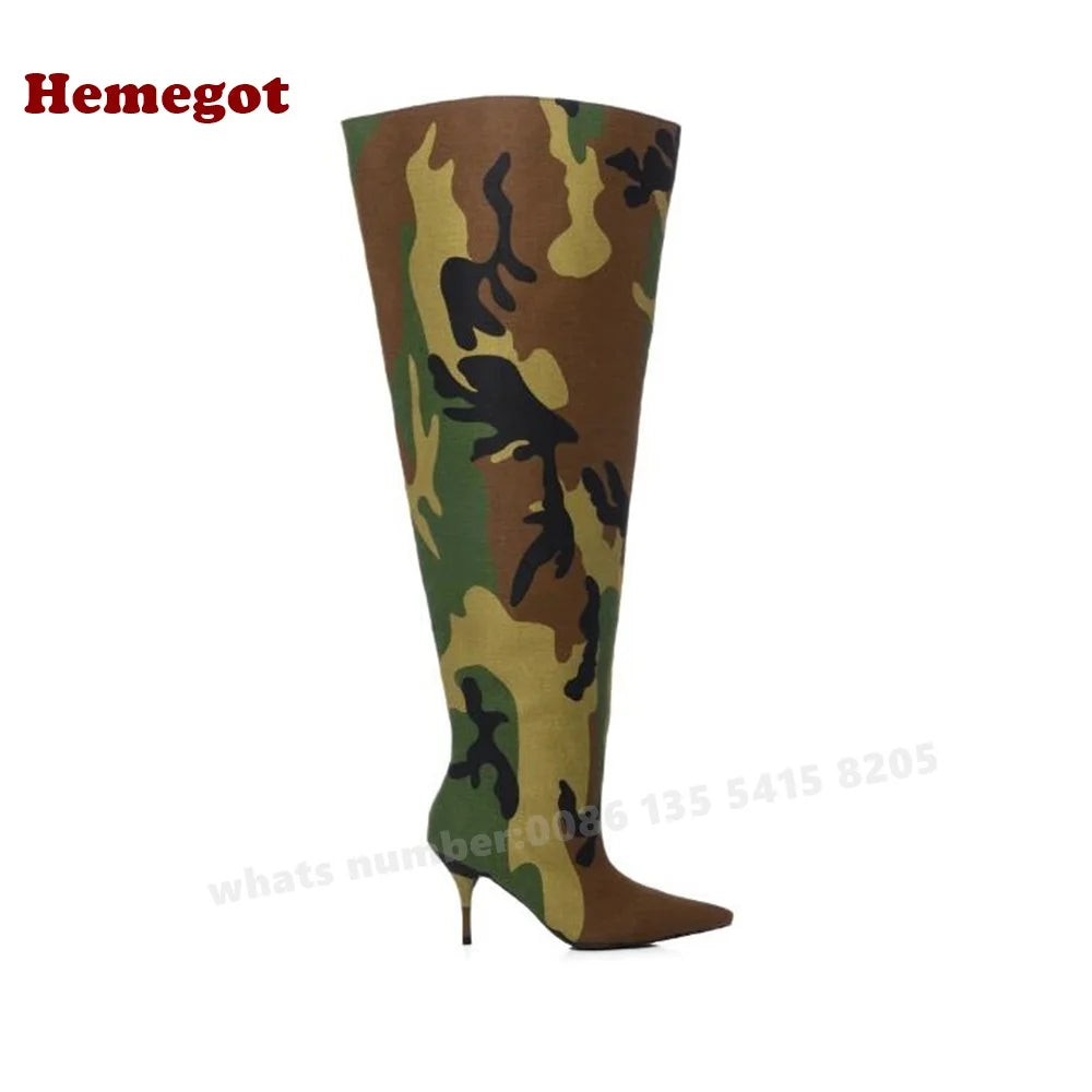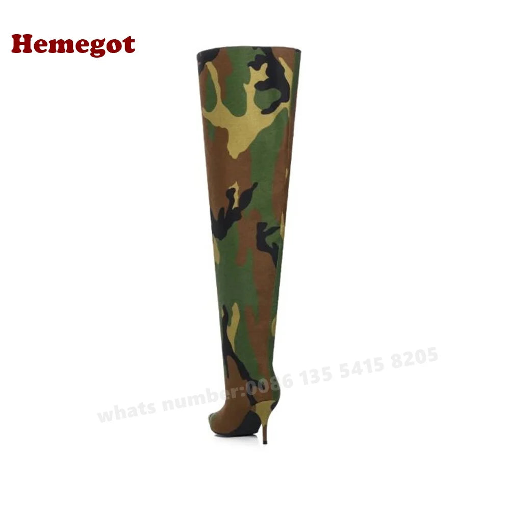 Camouflage Over The Knee Boots