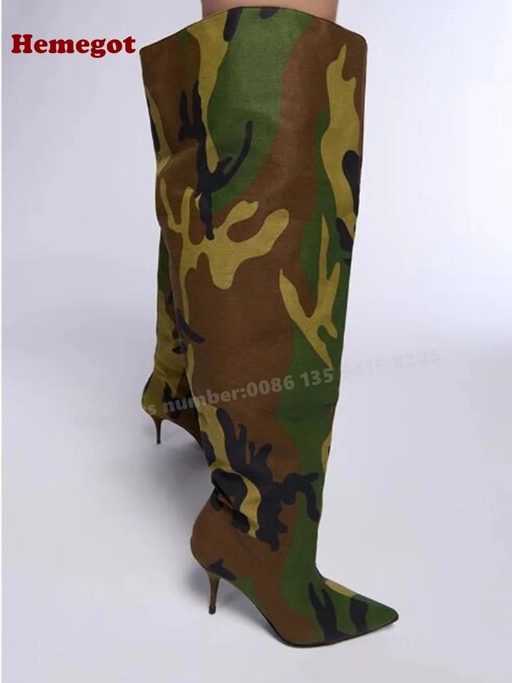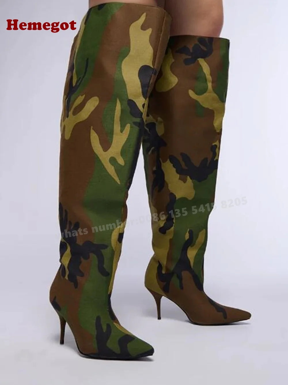 Get ready to make a bold statement in these stunning Camouflage Over The Knee Boots. With high heels, a pointy toe, and a stiletto design, these boots exude power and confidence. Slip them on this winter and stand out as a fierce and stylish trendsetter. These designer boots are perfect for any casual occasion and will add a touch of sexiness to any outfit.