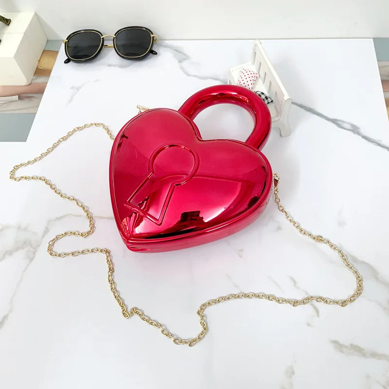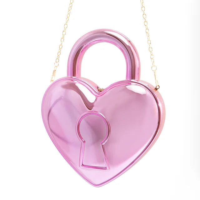 Ladies, get ready to elevate your style with this stunning Colorful Bright Acrylic Heart Bag! Its unique Love Lock Shape is perfect for weddings, parties, and any other special occasion. This Pink Gold Clutch Purse is not only fashionable but also functional with its versatile design and no pocket interior. The hard material and secure clasp will keep your belongings safe while the solid color and intricate chain and lock decorations add a touch of elegance. Made with high-quality cotton lining and acrylic main material, this Shell-shaped bag is lightweight and measures 19*7*17cm with a weight of just 0.4KG. Don't miss out on this must-have accessory!