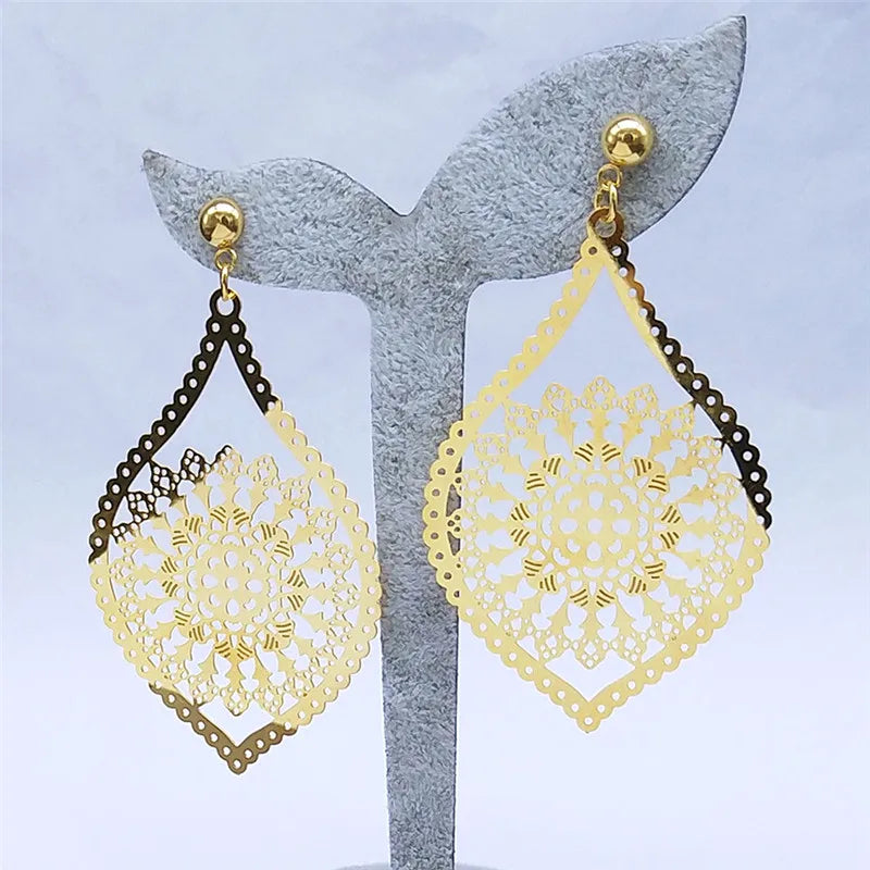 Discover the beauty of Bohemian style with our Fashion Bohemia Stainless Steel Flower Earrings! Made with high-quality stainless steel and featuring a stunning gold color, these Floral Stud Earrings are a must-have for any trendy and stylish woman. The unique plant-shape design adds a touch of nature to your fashion statement. Perfect for any occasion - from weddings and prom to anniversaries and parties - these earrings will make you feel confident, edgy, and truly Boho. Grab yours now and add this 15g piece of art to your jewelry collection!