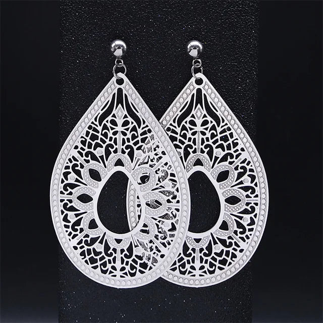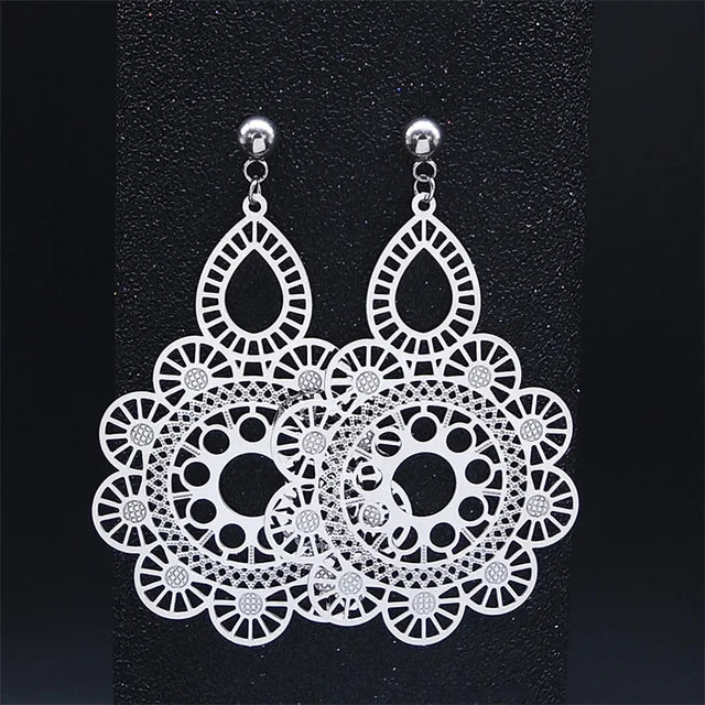 Fashion Bohemia Stainless Steel Flower Earrings - E9144