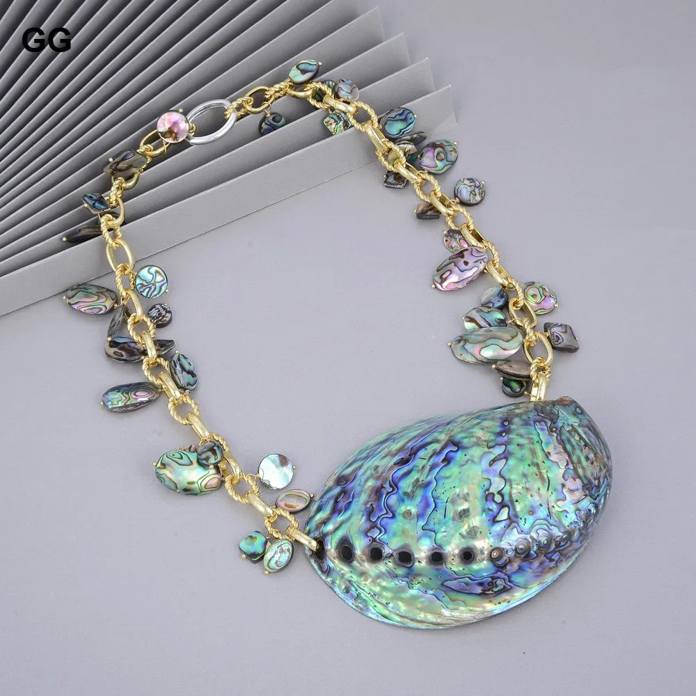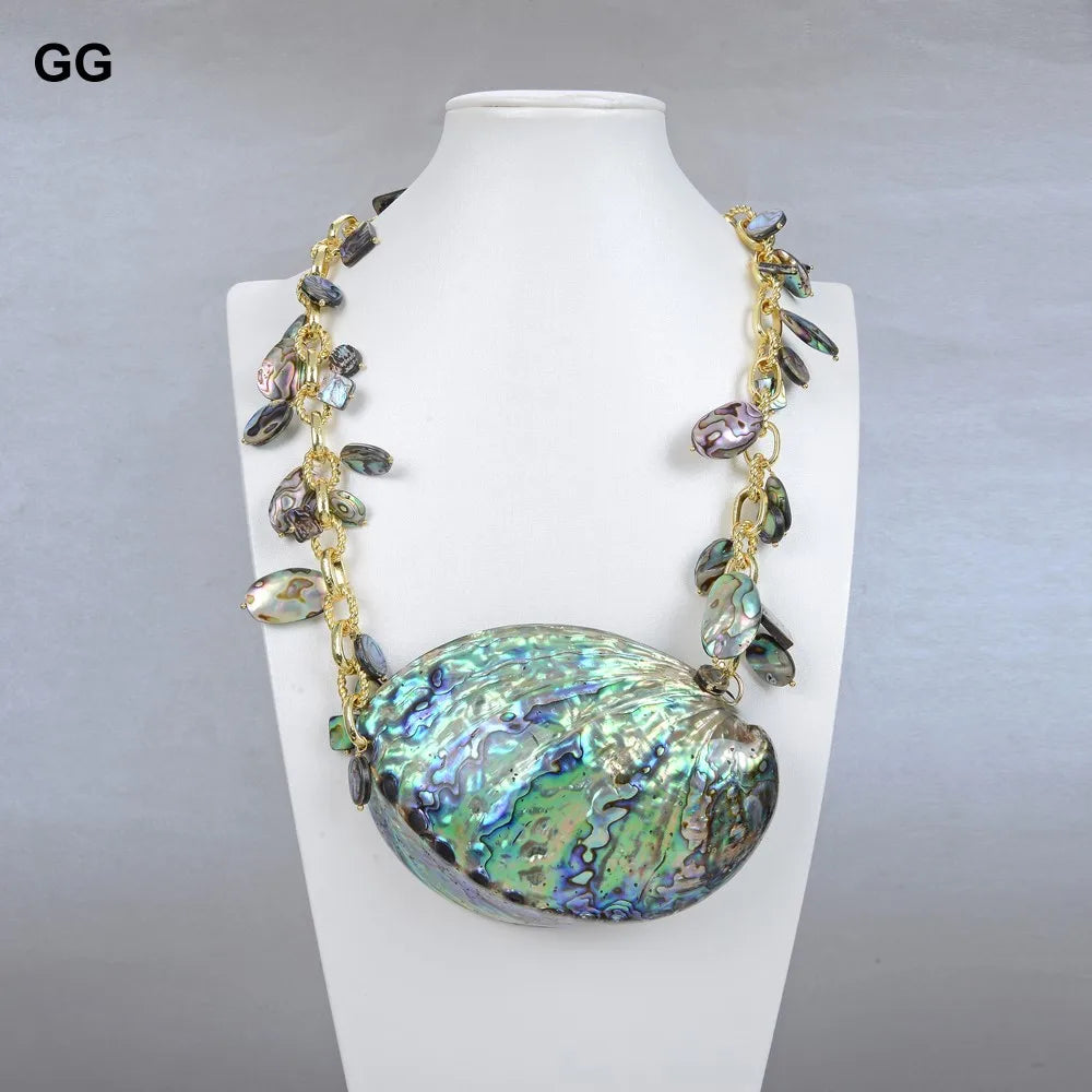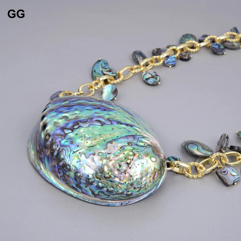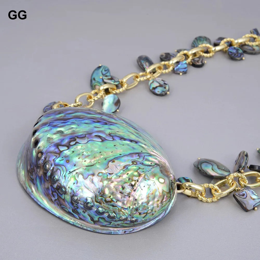 G-G Jewelry 25'' Natural Rainbow Abalone Shell Pendant Necklace For Women