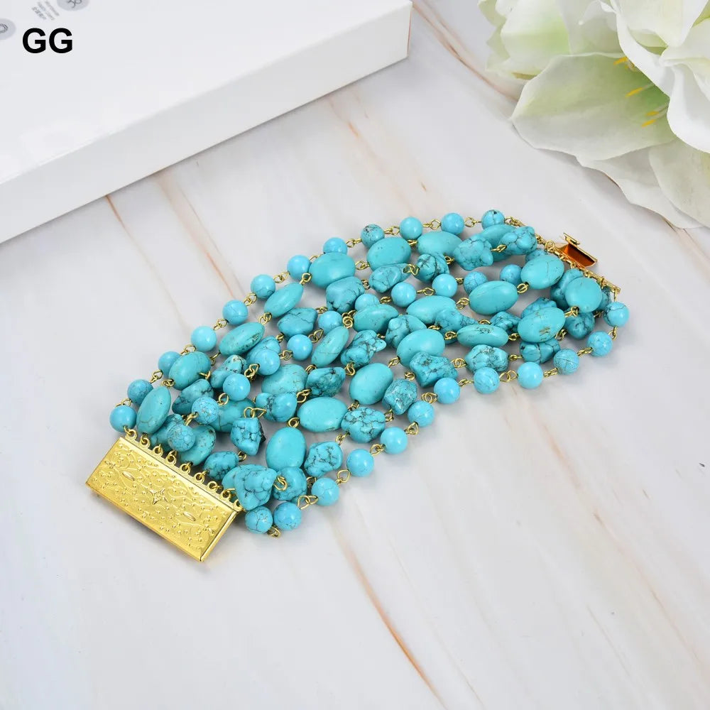 GG Natural 9 Strands Blue Turquoise Gems Stone Bracelet Cute For Women
