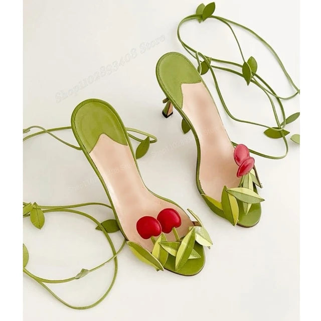 Green Cherry Decor Strappy Sandals