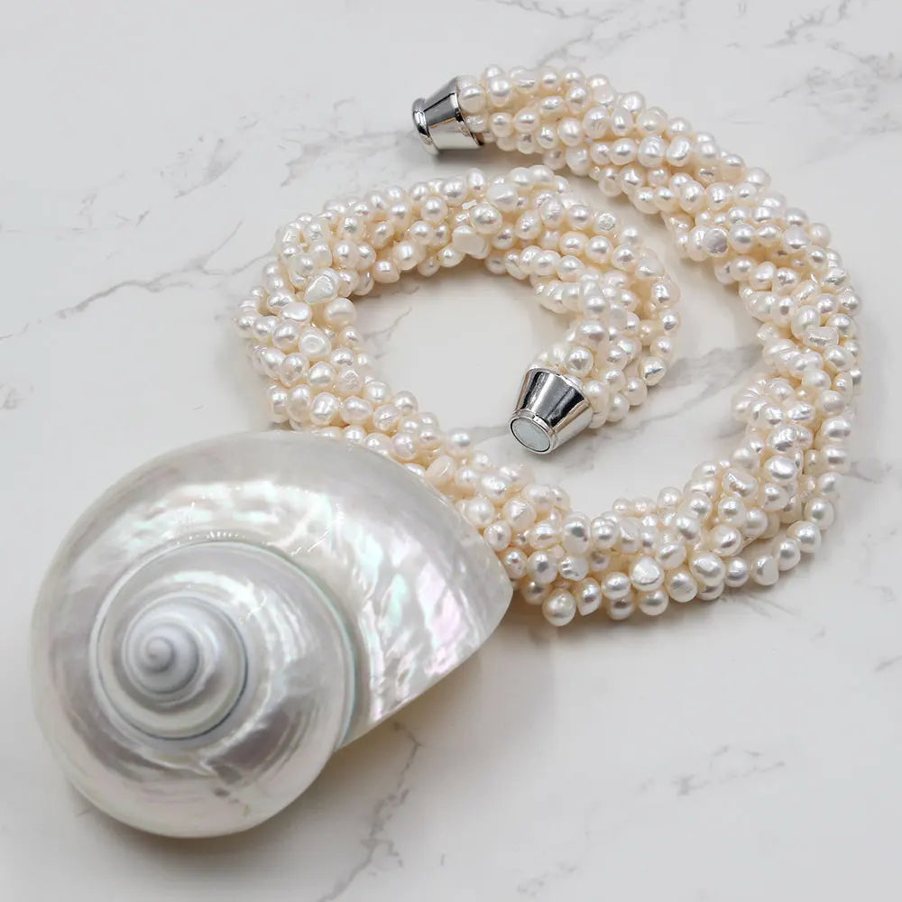 Looking for a unique necklace that will make you stand out? Look no further than this 7-strand GuaiGuai Jewelry necklace featuring real freshwater white keshi pearls and a real white mop flash shell turbo sarmaticus pendant. And with copper metals and a playful, quirky style, it's perfect for the fashionable woman who doesn't take herself too seriously. Add it to your collection from the AIPIAODEGUAIGUAI brand and you'll surely turn heads!