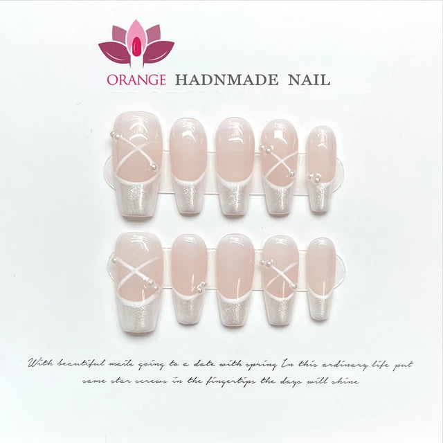 Experience the beauty and convenience of our Handmade French Fake Acrylic Press On Nails! Our designed reusable nails provide a full cover manicure that is wearable in XS, S, M, and L sizes. Each set comes with 10 pieces, perfect for all your nail needs. Our nails are handcrafted with high-quality acrylic material and are easy to apply with a press on design. Don't miss out on our popular false nails, available in multiple sizes and models at the orange nail store. Elevate your nail game with our handmade nails that provide a flawless finish every time!