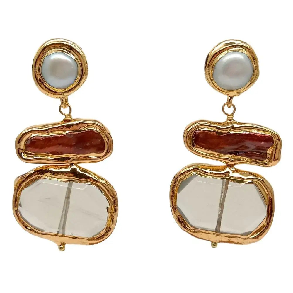 These KKGEM natural 21x28mm Lemon Quartz Faceted Rectangle Cultured Brown Biwa Freshwater Pearl Gold Filled Edge Stud Earrings are truly a treasure, complete with a certificate of authenticity. Hand-crafted with a classic and elegant design in mind, these earrings feature a beautiful geometric shape and are customized to fit each individual wearer. Made with 14K gold-filled metal and a beautiful yellow pearl, these earrings exude sophistication and feminine charm. Showcase your love for fine jewelry with these stunning yellow gemstone earrings from KAKAIBAGEMS.