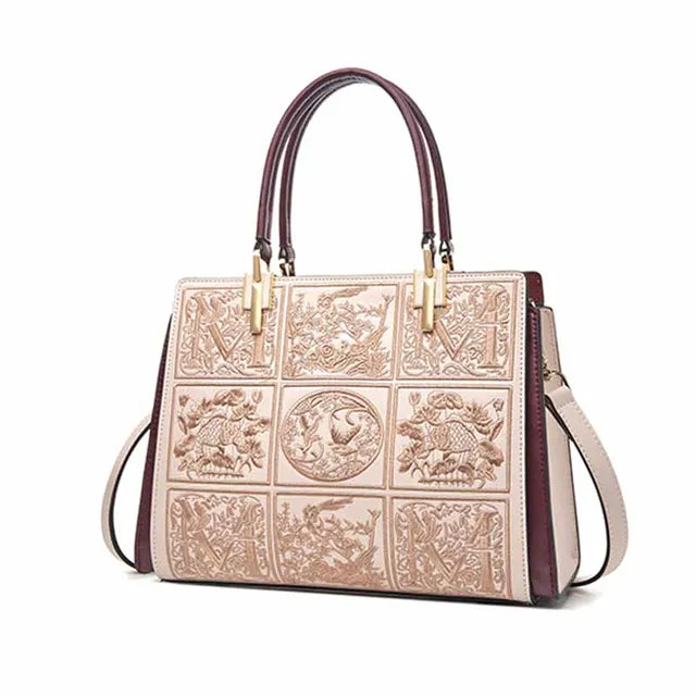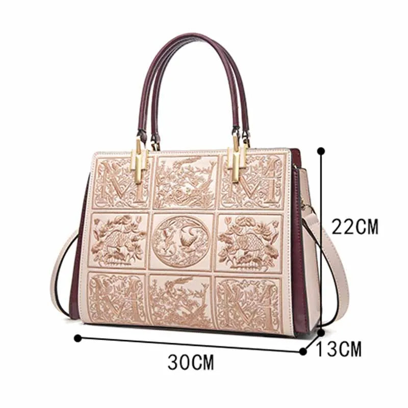 Indulge in the ultimate luxury with this exquisite Leather Women's Bag featuring Niche Embroidery and a HandBag Tote design. Perfect for any occasion, this bag is both high-quality and light, making it the perfect messenger bag for the fashion-forward woman. Its versatile and timeless style is enhanced by the soft yet durable Genuine Leather material, while the spacious interior includes a Cell Phone Pocket and Interior Zipper Pocket for convenience. The solid color and elegant shape of this bag make it a statement piece, perfect for inspiring strong emotions in every buyer. Elevate your fashion game with this must-have accessory that exudes passion and sophistication.
