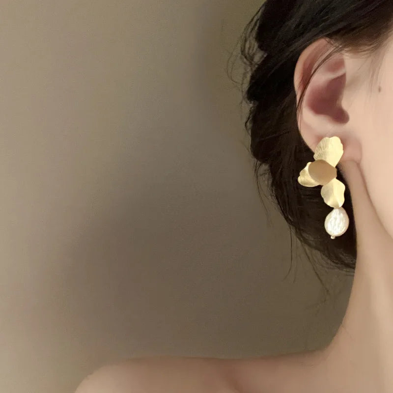 Minar Statement Fashion Gold Color Flower Petal Long Drop Earrings