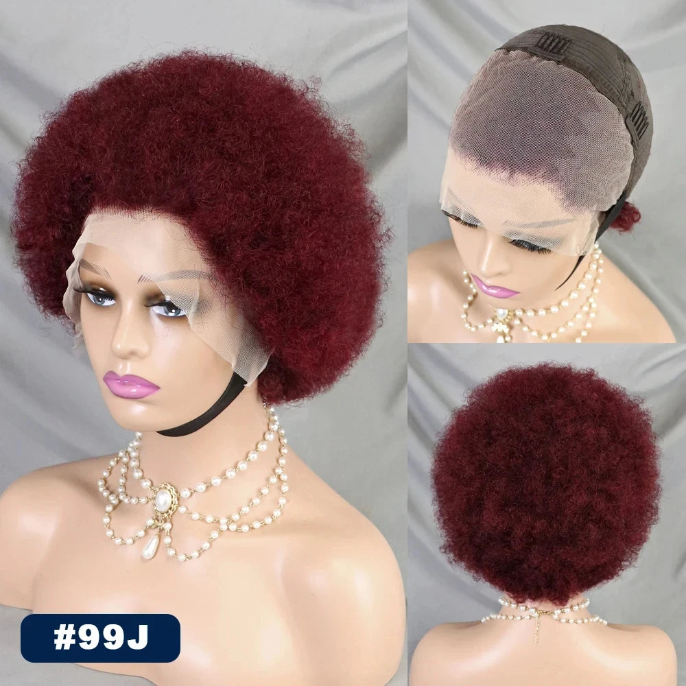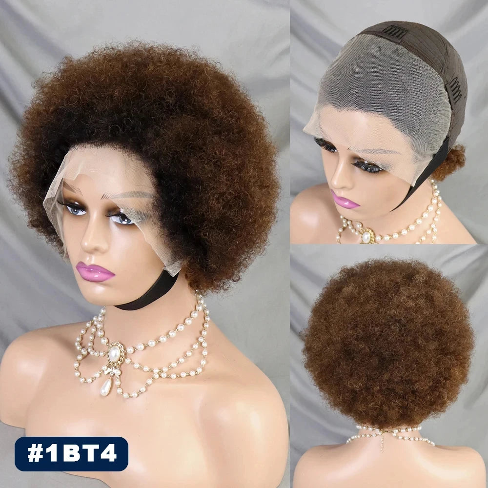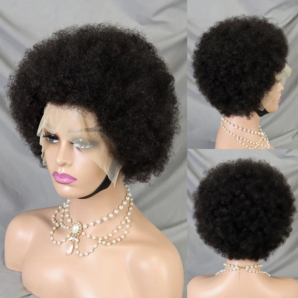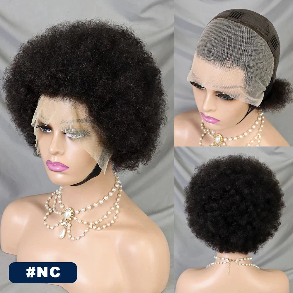 Experience the luxurious and natural look of our Natural Afro Kinky Curly Human Hair Wigs. Our 13x4 Transparent Full Lace Frontal Short Bob Wigs provide a perfect fit and a natural pre-plucked hairline for a flawless and effortless look. Perfect for women who want to embrace their natural hair with confidence and style.