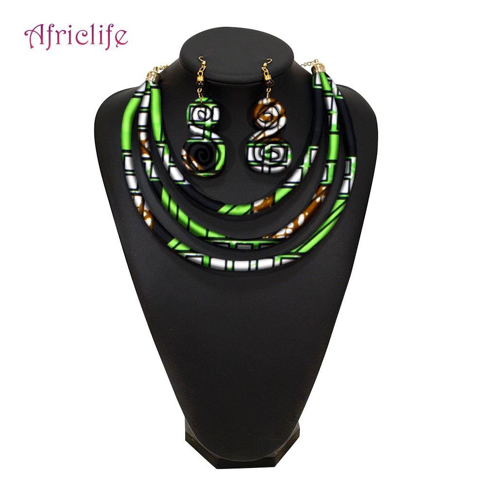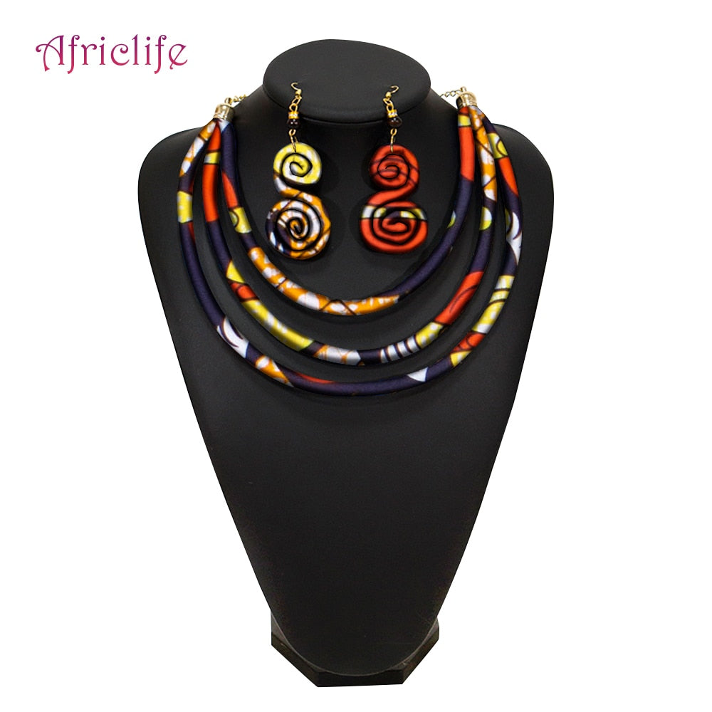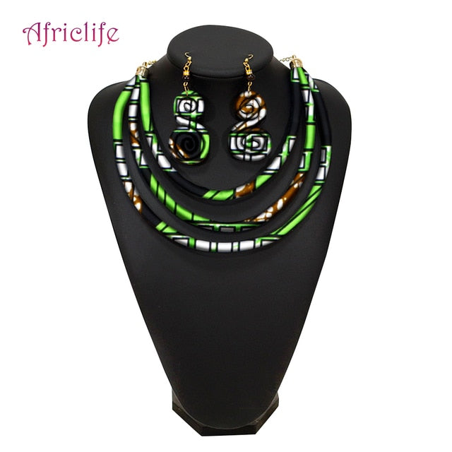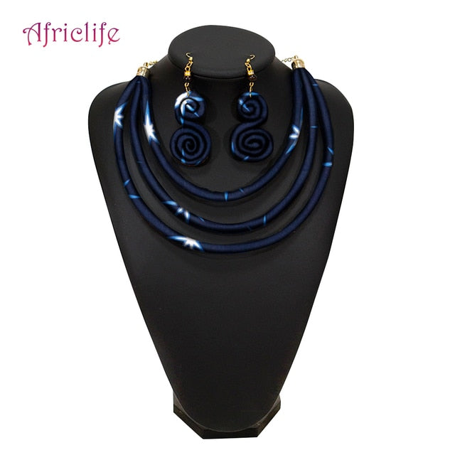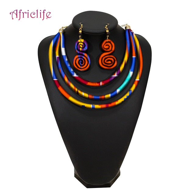 African Rope Necklace Print Wax Ankara Fabric Necklace and Earrings 2 Pieces Set