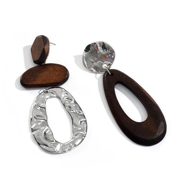 Lead with passion for the value of the product! Embrace your unique style and make a statement with these trendy irregularly shaped wooden drop earrings. Perfect for those who appreciate fine jewelry and want to stand out. The combination of wood and zinc alloy gives this piece a sophisticated and earthy touch. Ladies, don't miss out on these bold and beautiful earrings from Behind You. Elevate your fashion game with this eye-catching and versatile accessory.