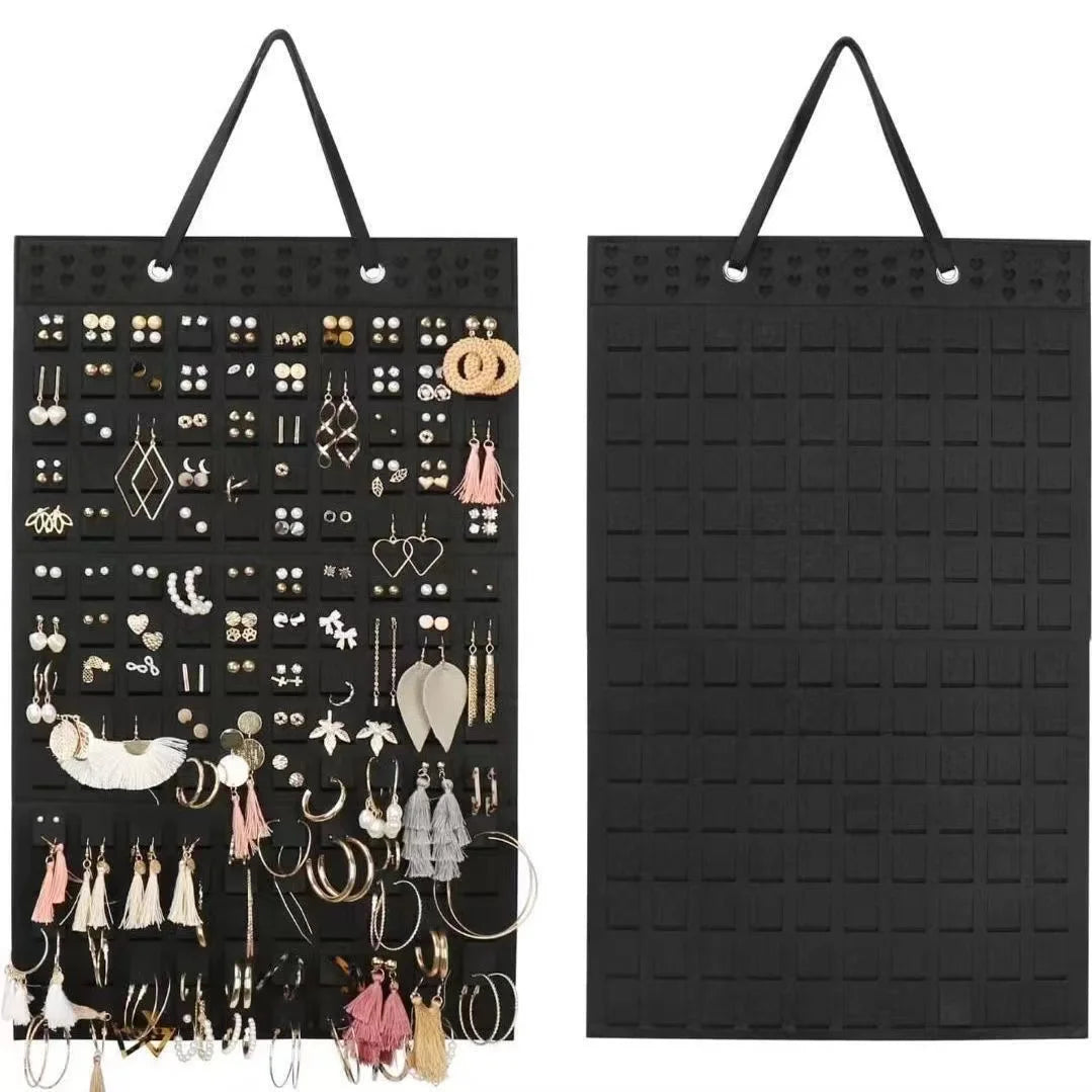 Introducing the Double Wall Mounted Jewelry Bag - the perfect solution for storing your precious jewelry! Made with high-quality velvet, this versatile piece can display earrings, store necklaces, and organize rings. Say goodbye to tangled jewelry and hello to a beautiful and functional storage option. Upgrade your jewelry organization game with our Double Wall Mounted Jewelry Bag today.