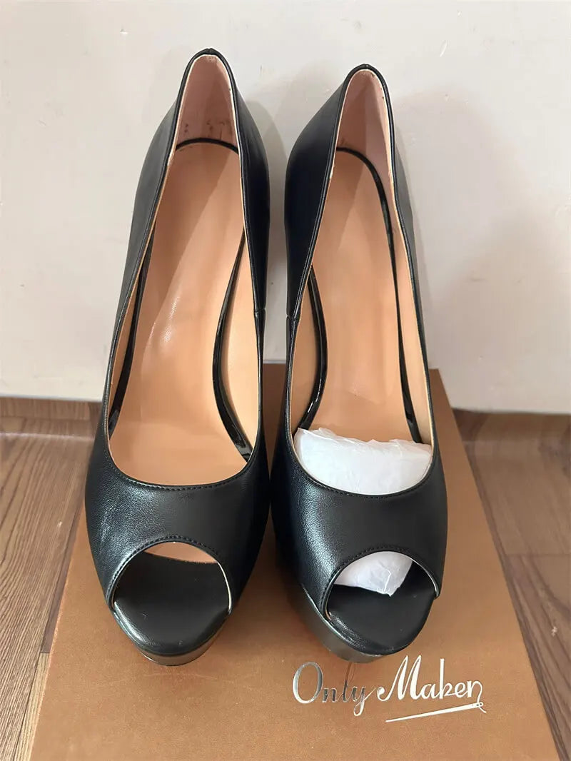 Onlymaker Peep Toe Platform Heel Pumps