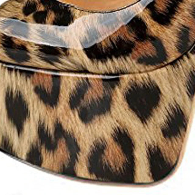 The Onlymaker Peep Toe Platform High Heel Pumps offer the perfect combination of style and comfort. With a platform height of 3-5cm and a heel height of 15-16cm, these shoes are sure to make a statement. The PU lining and covered side vamp provide a sleek look while the slip-on closure makes them easy to wear. The thin heels and covered back counter complete the fashionable design, making them a must-have for any fashion-forward individual. These sandals are perfect for any occasion, and with their leopard pattern, they are guaranteed to turn heads. Don't miss out on this must-have pair from Onlymaker.