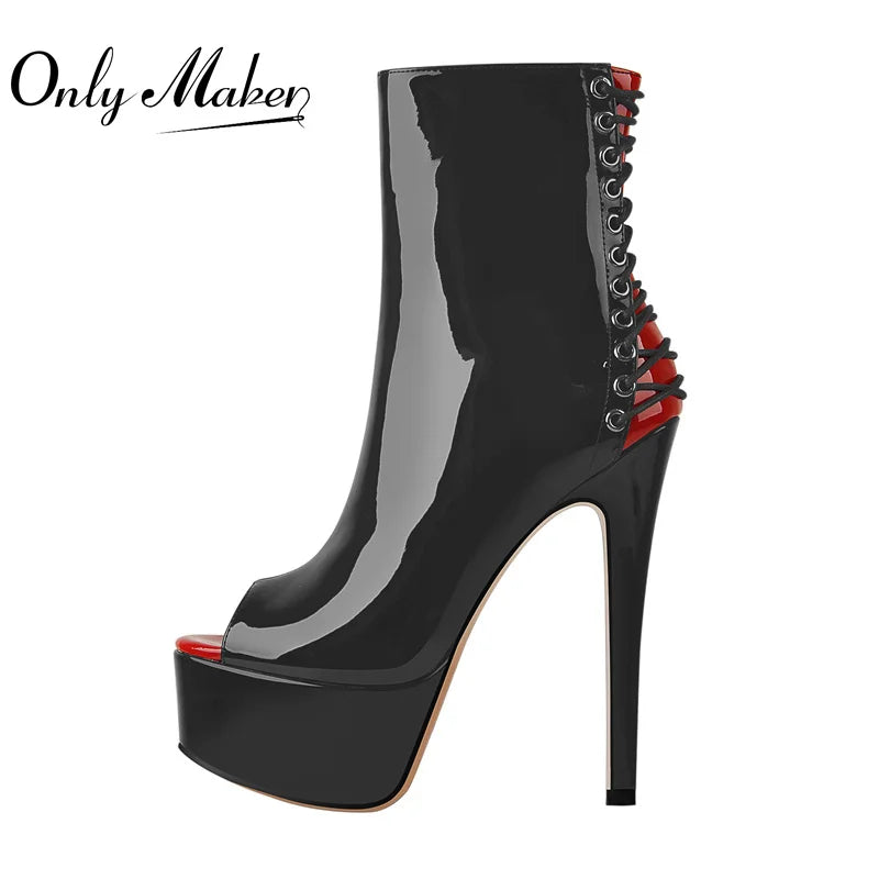 Add a bold statement to your wardrobe with Onlymaker Women's Platform Ankle Boots. These Thin High Heels feature Lace Up and Side Zipper detailing, making them both practical and sexy. Designed for a comfortable fit and available in Big Sizes, they are the perfect addition to any fashion-forward outfit. With a Platform Height of 3-5cm and a Super High Heel Height of 8cm and above, these boots will give you a confidence boost and elevate your style. Made of quality materials, they are perfect for a night out or casual occasions. Don't miss out on these must-have boots from the trusted brand Onlymaker.