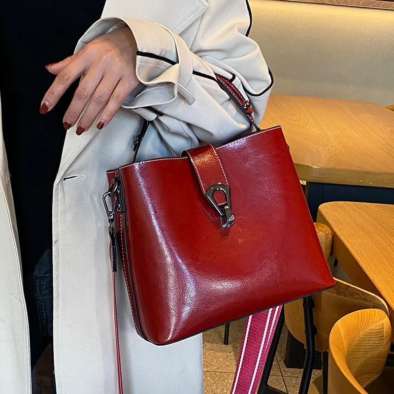 Real Oil Wax Leather Bucket Bag